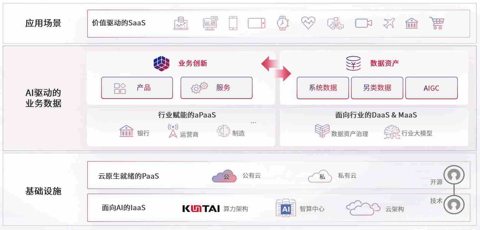数字时代,,,,围绕企业数字化转型的关键要素,,,OK钱包数码开创性的提出数云融合战略和技术体系框架,,着力在云原生、、数字原生、、AI原生和信创产业上架构产品和服务能力,,,为处在不同数字化转型阶段的快消零售、、、、汽车、、、、金融、、、、医疗、、政企、、教育、、运营商等行业客户提供泛在的敏捷IT能力和融合的数据驱动能力,,,构建跨界融合创新的数字业务场景和新业务模式,,,助力企业级客户建立面向未来的核心能力和竞争优势,,,全面推动社会的数字化、、、、智能化转型升级。。。。